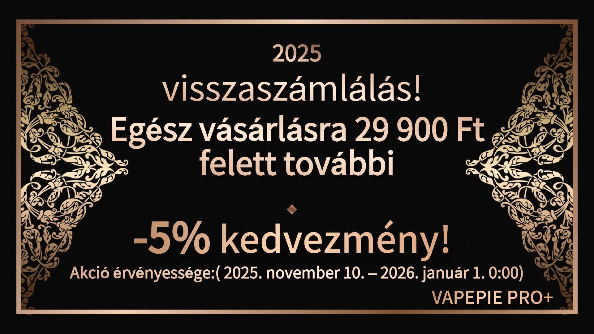 Vapepie.hu kedves ügyfele!Vapepie PRO+ VIP oldal! Csatlakozz most, és élvezd az exkluzív előnyöket! (29 900 Ft felett +5% azonnali kedvezmény)