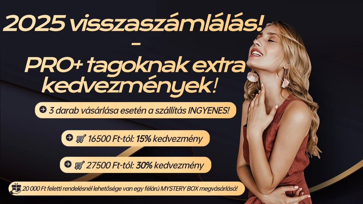 • 🛒 16500 Ft-tól: 15% kedvezmény • 🛒 27500 Ft-tól: 30% kedvezmény 🚚 3 darab vásárlása esetén a szállítás INGYENES! 🎁 Ráadás bónusz: 20 000 Ft feletti rendelésnél lehetősége van egy félárú MYSTERY BOX megvásárlásá!
